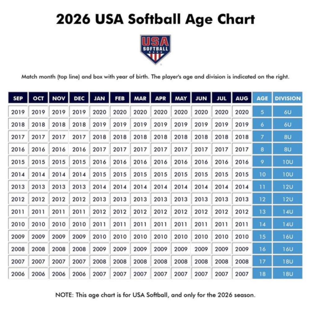 If you are unsure of which division your child should play under, please use this USA Softball Age Chart.