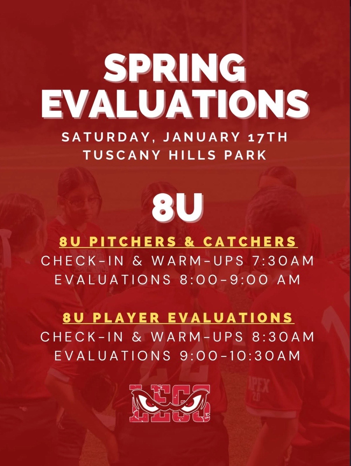We are currently offering softball divisions for 6U and up.